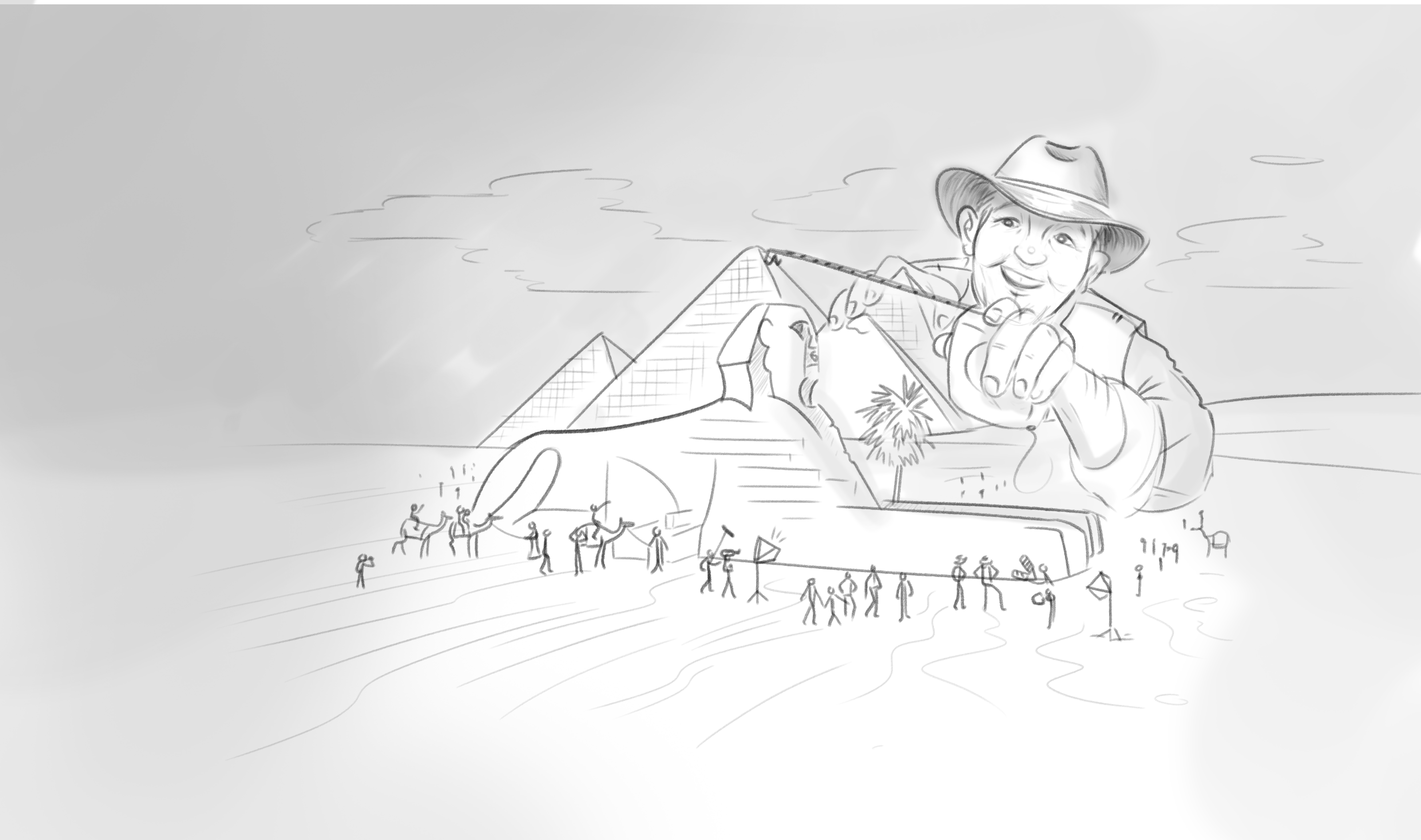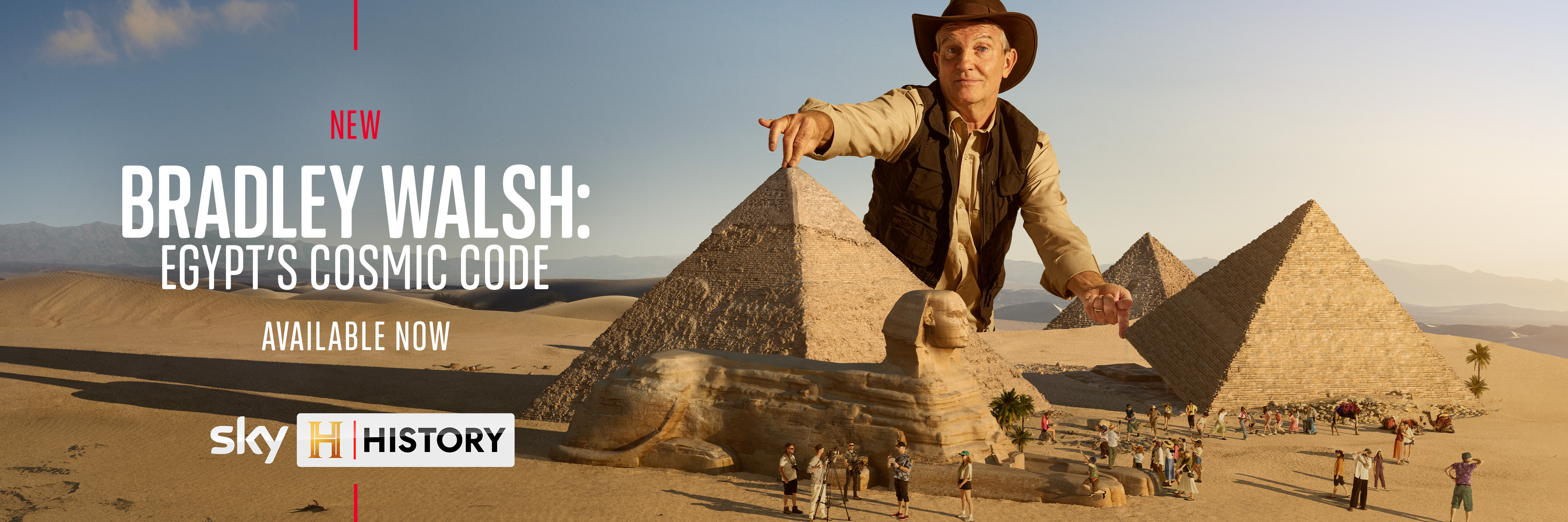 My latest Campaign for Sky History saw me travel far, to North London to shoot a scale model of the Giza plateau, for Sky History's newest commission Bradley Walsh: Egypt's Cosmic Code. Working with photographer Dan Burn-Forti and the team at All Set's we built a scaled down model of Giza to have Bradley interact with and show that he was going to get hands-on with the Pyramids. We also shot extras from the office on the day to have fun with our tourists, to also showcase Bradleys humour as part of the show. See below to see final Key Art, 60Sec promo, 30Sec promo, 3x 10sec promos, Man-Made or Alien for Social, Two interviews I shot with Bradley, A TikTok flip video, Key Art (Portrait), and a few different Scamps from the creative process.